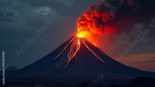 a huge erupting volcano spews out magma and thousands of tons of smoke and ash