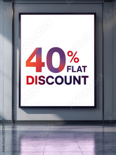 A huge poster with the inscription 40 percent flat discount On the gray wall