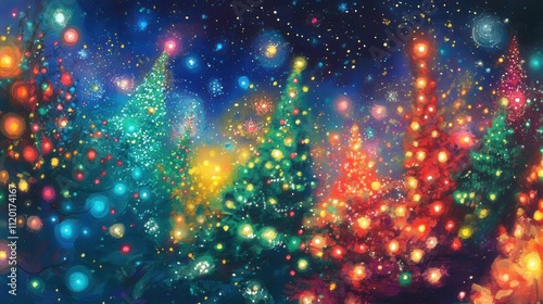 A joyful holiday scene with an array of colorful Christmas lights in red, green, blue, and yellow