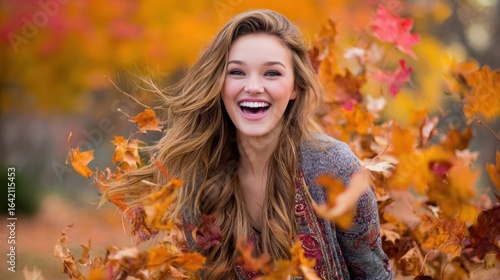 woman, leaf, autumn, fall season, laughing, colourful, happy woman, fall, season, foliage, portrait, smile, beauty, expression, happiness, natural, smiling, joy, vibrant, gold, charming, expressive, enjoyment, cheerful, positive, lively, dynamic, fresh, attractive, marvellously, beautiful, elegant, girl, lady, playful, autumn color, nature, outside, warmth, sunlight, golden hour