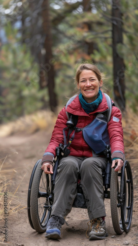 woman, wheelchair, nature, forest, trail, autumn, smiling, outdoors, adventure, accessibility, joy, terrain, hiking, environment, tree, path, disability, scenic, exploration, healthy, rejuvenating, wilderness, activity, lifestyle, empowerment, community, support, freedom, engagement, happiness, beauty, motivation, inclusive, life events, serenity, peaceful, greenery, colourful, landscape, connection, exercise, fresh, air, movement, sunlight, calmness, balance, companionship, resilience