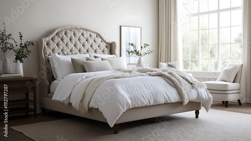 large, bed, white, comforter, pillow, rug, chair, room, clean, design, simple, natural, window, interior, furniture, home, light, modern, hotel, house, apartment, floor, luxury, decor, style, bedchamber, wall, lamp, contemporary, space, table, blanket, bedchamber, sleep, soft, indoor, living, residential, double, classic, nobody, background, architecture, cosy, elegant, bright, cushion, lifestyle