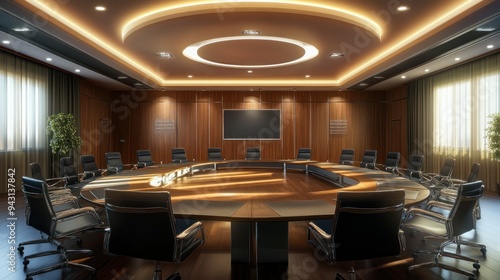 business, interior, conference, room, furniture, table, chair, meeting, modern, office, empty, architecture, corporation, design, board, desk, boardroom, work, nobody, workplace, seminar, screen, presentation, company, contemporary, discussion, window, management, indoor, building, commercial, professional, wood, wall, projector, light, seat, space, white, hall, inside, armchair, decoration, floor, luxury, executive, row, background