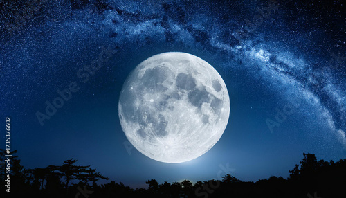 a large full moon shines brightly in the night sky