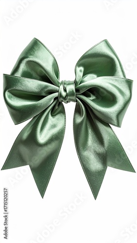 bow, ribbon, green, sage, satin, silk, fabric, textile, tied, knot, present, gift, decoration, ornament, smooth, shiny, glossy, elegant, luxurious, festive, celebration, holiday, special, occasion, detail, texture, loop, tail, pointed, sharp, isolated, white, background, simple, beauty, elegance, style, craft, hand-made, wrapping, package, accessory, apparel, fashion, drape, shimmer, colours, shade, hue