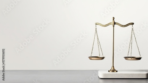 A lawyers office with retro justice scales on a desk in a courtroom representing impartiality and fair judgment
