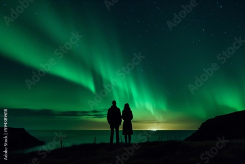 a little boy looks at the polar lights created with Generative AI technology