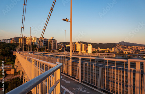 a lua, os prédios e o visto da ponte Hercílio Luz de Florianópolis, Santa Catarina, Brasil Florianopolis
