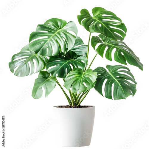 A Lush Potted Monstera Plant with Large Split Leaves Isolated on Transparent Background