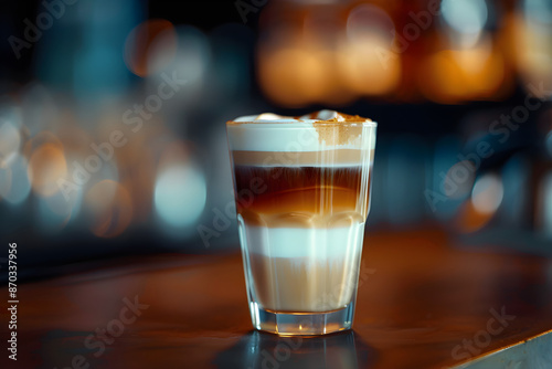 A macchiato with layers of milk and espresso