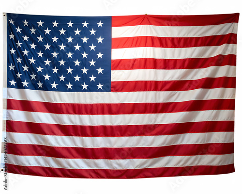A majestic American flag proudly displayed, symbolizing freedom and patriotism with its bold red and white stripes and a field of blue stars.