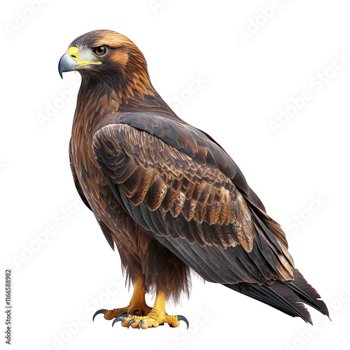 A majestic golden eagle standing proudly with detailed feathers.