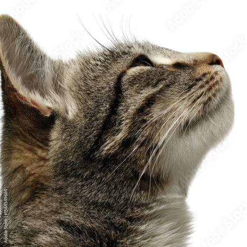 A Majestic Tabby Cat Gazing Upwards: A Close-Up Portrait of Feline Elegance and Serenity