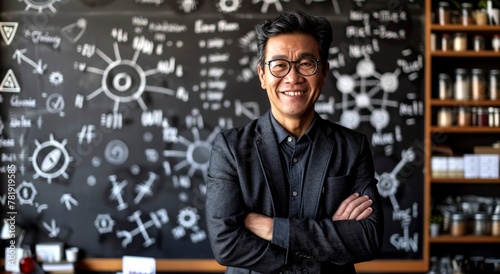 A male teacher Standing in Front of Chalkboard