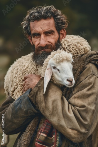 A man holding a sheep in his arms. Suitable for agricultural or farming concepts