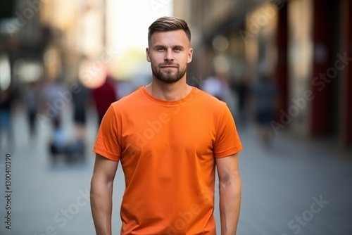 man, orange, shirt, sidewalk, front, building, smiling, looking, male, person, young, camera, portrait, adult, guy, outdoors, happy, standing, city, modern, photogenic, caucasian, casual attire, attractive, white, lifestyle, business, face, urban, stylish, model, fashion, businessman, beard, street, background, style, photogenic, work, success, job, cool, corporate, view, posing, office, outside, successful, confident