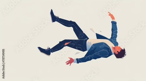 A man is falling to the ground. The image is a cartoonish representation of a man falling