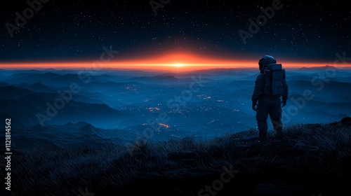 A man standing on top of a mountain looking at the sunset
