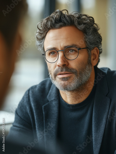 A man talking to a man. At a psychotherapist's. A man in a psychologist's office.