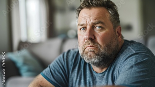 portrait, blue, man, eye, room, expression, beard, grey, thoughtful, face, depressed, hair, health, stress, upset, sad, blurred, shirt, mad, couch, moustache, worried, window, sitting, unhappy, background, casual attire, wrinkle, image, relaxed, eyebrow, indoor, photo, comfortable, home, pillow, furniture, curtain, interior