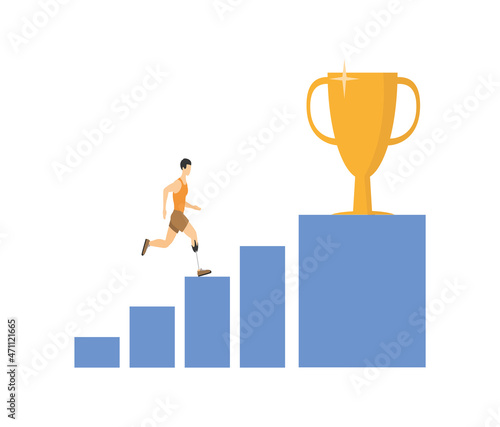 progress, successful, up, winner, disability, competition, runner, athlete, fitness, human, sportsman, training, exercise, jogger, living, success, winning, victory, performance, happiness, carbon, champion, championship, prize, leader, best, cup, marathon, mobility, racing, start, strong, trophy, person, sport, leg, overcoming, sprinter, sportive, motion, cartoon, illustration, prosthesis, man, active, isolated, vector, prosthetic