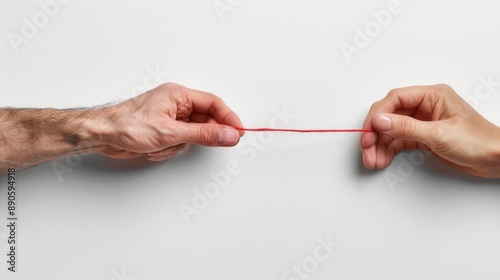A man's hand reaching out to touch the red string tied around his wife