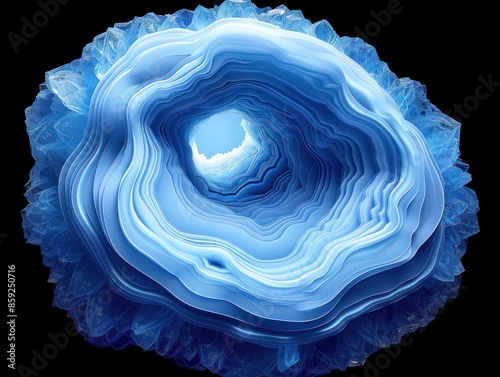 A mesmerizing blue crystal cave with a swirling, intricate inner chamber