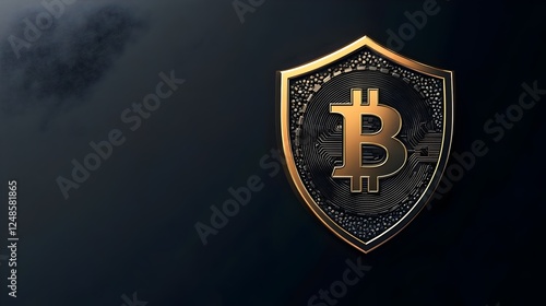 A metallic shield with a Bitcoin coin in the center. symbolizing Bitcoin security, protection, Cryptocurrency security, Bitcoin protection, digital finance, blockchain safety, cybersecurity.