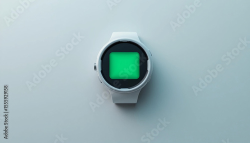 white, digital, watch, minimal, screen, green, wearable, clean, futuristic, tech, background, center, modern, wristwatch, soft, light, blank, bright, horologe, subtile, glow, layout, sleek, product, contraption, accessory, crisp, neutral, empty, simple, rectangle, new, frame, design, fashion, wrist, object, silicon, smooth, elegant, technology, electronic, equipment, buttons