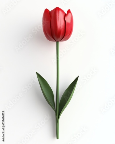 A minimalist 3D render of a single tulip, elegant and refined, isolated on white background