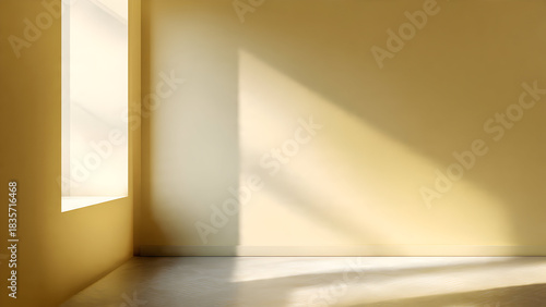 A minimalist apartment wall with sunlight wash creating creamy yellow gradient that softens toward shadow