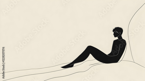 A minimalist depiction of a person sitting alone with a slouched posture, represented by simple black lines and a shadowed backdrop