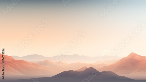 a minimalist mountain landscape at sunset, with clean lines and a focus on the interplay of light and shadow.