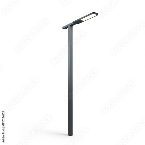 light, street, modern, lamp, post, pole, tall, metal, urban, city, night time, illumination, led, bright, efficient, contemporary, sleek, minimalist, design, functional, public, fixture, isolated, solo, single, lone, solitary, alone, independent, singular, unique, white, background, clean, plain, simple, stark, blank, empty, neutral