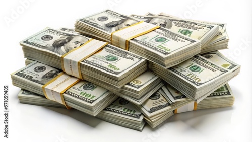 A neat pile of fresh hundred-dollar bills arranged in a organized stack, against a clean white background, showcasing