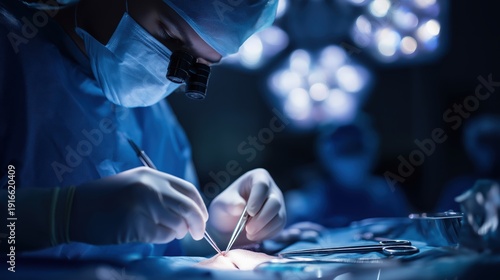A neurosurgeon performing delicate brain surgery under surgical microscope