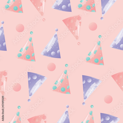 A pattern with a festive hat for a birthday. Colorful background for gifts and textiles.