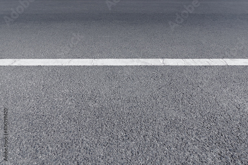 A paved street road with white traffic lines is an empty background. Concept highway city road and country road.