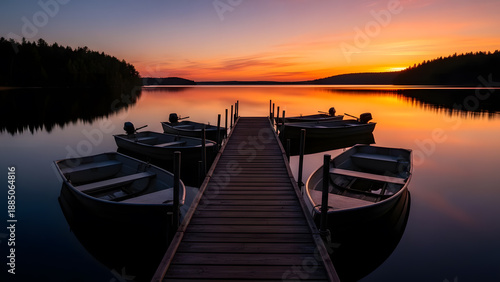 serene, lake, sunset, small, fishing, boat, moored, wooden, pier, water, horizon, sky, orange, twilight, evening, calm, peace, dock, breakwater, nature, landscape, travel, recreation, quiet, gold, hours, shore, nautical, transportation, dinghy, scenic, beauty, stillness, summer, vacation, dusk, relax, atmosphere, silent, waterfront, background, light, mist, tranquil, solitude, adventure, mirror