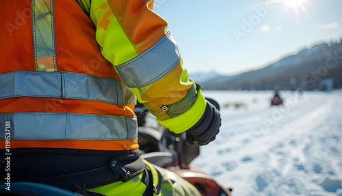 snowmobile, winter, snow, rider, vivid colors, clear sky, cold weather, adventure, terrain, recreation, glove, machinery, transportation, scenic, landscape, exploration, fun, nature, equipment, winter sports, sunlight, glacé, leisure, thrill, speed, journey, activity, wilderness, unique, vibrant, environment, adrenalin