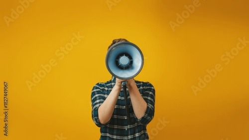 A person holds a megaphone, emphasizing communication against a vibrant yellow background.