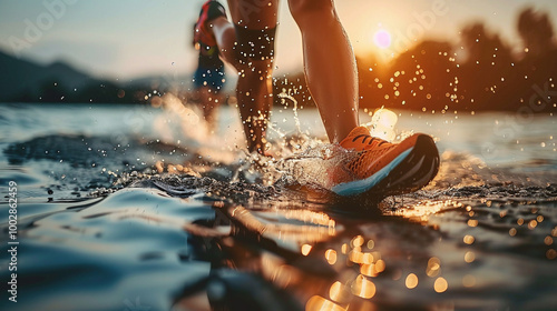 A person in athletic gear engages in low-impact activities such as swimming, cycling or brisk walking. hd ai GENERATE image.