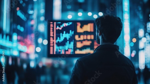 A person staring at a digital screen showing the end of the stock market,