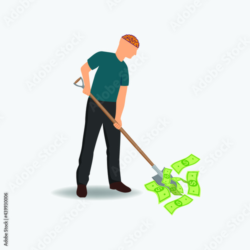 a person with a shovel. A person shovels money. solves up money vector.