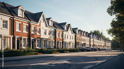 A photo of a row of townhouses in a residential area