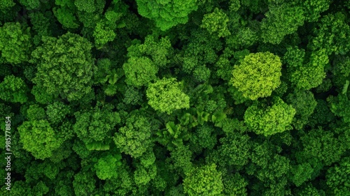 A photostock image of a team planting trees in a dense forest to restore the ecosystem, ideal for reforestation campaigns, High angle view