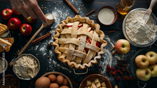 A pie with apples, cinnamon and other ingredients.