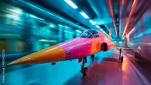 jet, runway, plane, aircraft, speed, motion, futuristic, technology, innovation, modern, sleek, aerodynamic, speedway, garage, interior, lighting, dynamic, fast