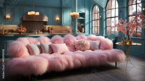 sofa, pink, fur, blue, room, flower, arrangement, corner, interior, design, home, decor, luxury, chic, glamourous, soft, fluffy, comfortable, cosy, homelike, nest, sanctuary, retreat, escape, haven, paradise, utopia, dream, arriving, true, honed, ideal, heavenly, divine, blissful, serene, tranquil, peaceful