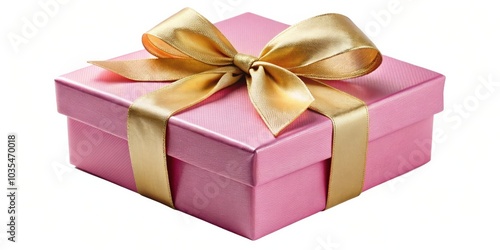 A pink gift box adorned with a golden ribbon, a symbol of celebration and joy.